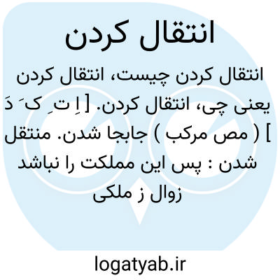 ز ملکی بملکی کند انتقال.( بوستان ).|| از جایی بجایی رفتن. || مردن. درگذشتن. ( فرهنگ فارسی معین ). || ( اصطلاح اداری ) کارمندی را از وزارتخانه، اداره یا دایره ای، بوزارتخانه، اداره یا دایره دیگر فرستادن. ( فرهنگ فارسی معین ). انتقال دادن. منتقل کردن.
