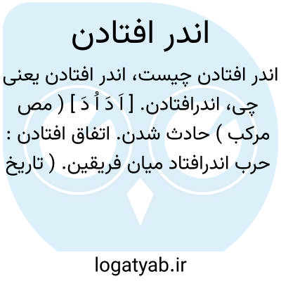 اندرافتادن. [ اَ دَ اُ دَ ] ( مص مرکب ) حادث شدن. اتفاق افتادن: حرب اندرافتاد میان فریقین. ( تاریخ سیستان ). || خود را در میان چیزی انداختن: