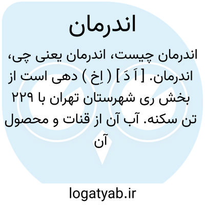 اندرمان. [ اَ دَ ] ( اِخ ) دهی است از بخش ری شهرستان تهران با 229 تن سکنه. آب آن از قنات و محصول آن غلات، چغندرقند و صیفی است. ( از فرهنگ جغرافیایی ایران ج 1 ).