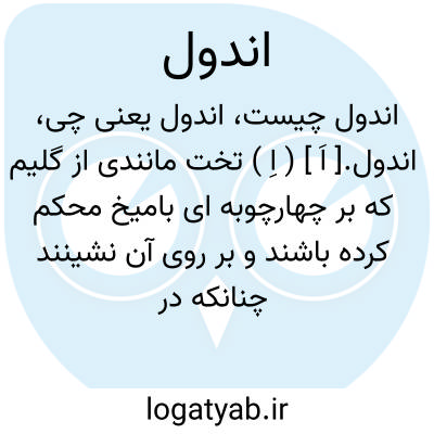 اندول.[ اَ ] ( اِ ) تخت مانندی از گلیم که بر چهارچوبه ای بامیخ محکم کرده باشند و بر روی آن نشینند چنانکه در زنگبار معمول است. ( از برهان قاطع ) ( ناظم الاطباء ).