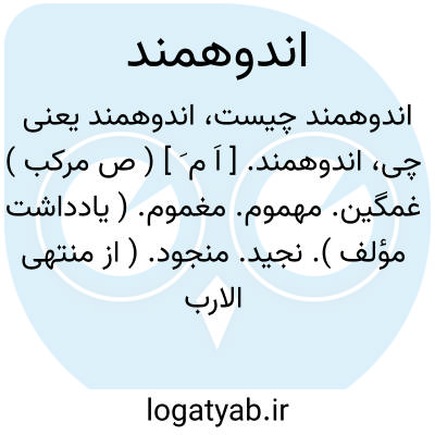اندوهمند. [ اَ م َ ] ( ص مرکب ) غمگین. مهموم. مغموم. ( یادداشت مؤلف ). نجید. منجود. ( از منتهی الارب ): طعام پیش نهاد و هرچند خوردند از آن کمتر نشد. ابولهب گفت: محمد ما را از بهر آن خواند تا این جادوی خویش ما را بنماید. پیغمبر علیه السلام از آن اندوهمند شد. ( تاریخ بلعمی ). و ترش روی و گرفته و اندوهمند باشد ( خداوند قطرب ). ( ذخیره خوارزمشاهی ). ترس که ناگاهان باشد نبض را سریع ولرزان و مختلف و بی نظام کند و آنچه ناگاهان نباشد نبض را چون نبض اندوهمند کند. ( ذخیره خوارزمشاهی ).