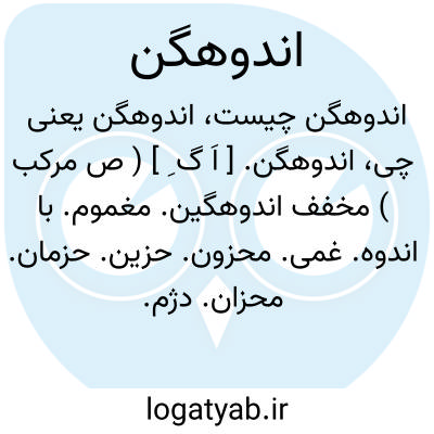 اندوهگن. [ اَ گ ِ ] ( ص مرکب ) مخفف اندوهگین. مغموم. با اندوه. غمی. محزون. حزین. حزمان. محزان. دژم. پژمان. مهموم. اسیف. ( یادداشت مؤلف ):