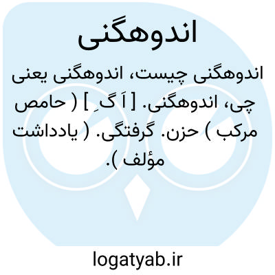 اندوهگنی. [ اَ گ ِ ] ( حامص مرکب ) حزن. گرفتگی. ( یادداشت مؤلف ).