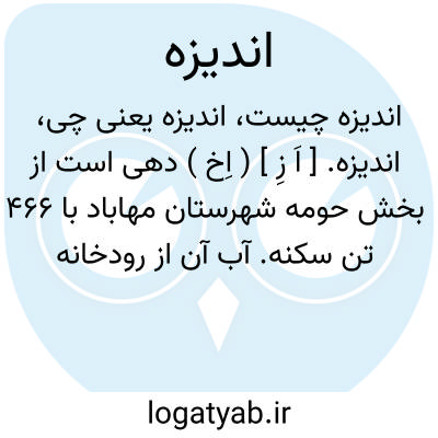 اندیزه. [ اَ زِ ] ( اِخ ) دهی است از بخش حومه شهرستان مهاباد با 466 تن سکنه. آب آن از رودخانه جلدیان است. ( از فرهنگ جغرافیایی ایران ج 4 ).
