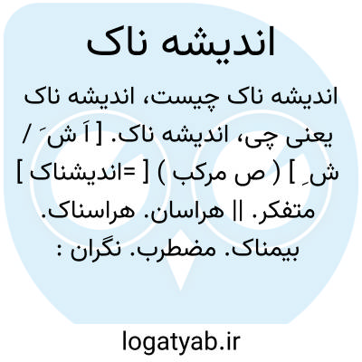 اندیشه ناک. [ اَ ش َ / ش ِ ] ( ص مرکب ) [ =اندیشناک ] متفکر. || هراسان. هراسناک. بیمناک. مضطرب. نگران: