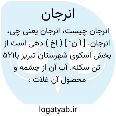 انرجان. [ اَ ن َ ] ( اِخ ) دهی است از بخش بستان آباد شهرستان تبریز با 282 تن سکنه. آب آن از چشمه و محصول آن غلات است. ( از فرهنگ جغرافیایی ایران ج 4 ).