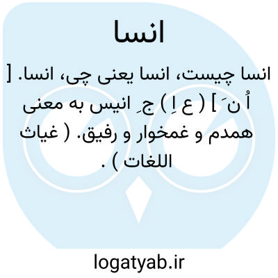انسا. [ اُ ن َ ] ( ع اِ ) ج ِ انیس به معنی همدم و غمخوار و رفیق. ( غیاث اللغات ).