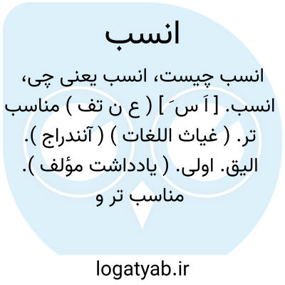 انسب. [ اَ س َ ] ( ع ن تف ) مناسب تر. ( غیاث اللغات ) ( آنندراج ). الیق. اولی. ( یادداشت مؤلف ). مناسب تر و ماننده تر و همشکل تر. ( ناظم الاطباء ). || عالم تر به علم انساب. عالم تر به نسب: عقیل بن ابی طالب برادر علی بن ابیطالب علیه السلام انسب قریش و اعلم آنان به ایام عرب بود. ( از منتهی الارب بنقل یادداشت مؤلف ). || هذا الشعر انسب؛ یعنی این شعر بسیار لطیف است از روی عشقبازی. ( منتهی الارب ) ( ناظم الاطباء ). بسیار لطیف از روی عشقبازی ( شعر ). ( یادداشت مؤلف ).