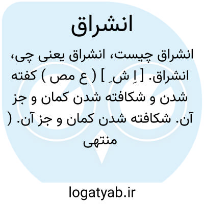 انشراق. [ اِ ش ِ ] ( ع مص ) کفته شدن و شکافته شدن کمان و جز آن. شکافته شدن کمان و جز آن. ( منتهی الارب ) ( ناظم الاطباء ) ( از آنندراج ). شکافته شدن کمان. ( از اقرب الموارد ).