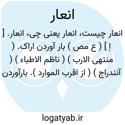 انعار. [ اِ ] ( ع مص ) بار آوردن اراک. ( منتهی الارب ) ( ناظم الاطباء ) ( آنندراج ) ( از اقرب الموارد ). بارآوردن درخت اراک. ( تاج المصادر بیهقی ).