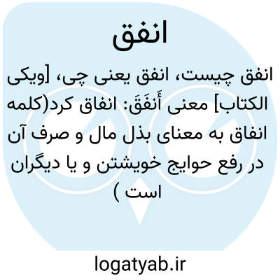 [ویکی الکتاب] معنی أَنفَقَ: انفاق کرد(کلمه انفاق به معنای بذل مال و صرف آن در رفع حوایج خویشتن و یا دیگران است )