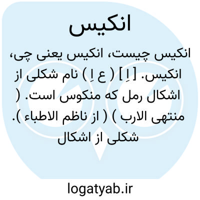 انکیس. [ اِ ] ( ع اِ ) نام شکلی از اشکال رمل که منکوس است. ( منتهی الارب ) ( از ناظم الاطباء ). شکلی از اشکال رمل و آن سه خط متساوی است که زیر آنها نقطه باشد. ( از اقرب الموارد ). شکلی از اشکال رمل و درعربی به معنی برگشته و برگشتن است. ( از آنندراج ).