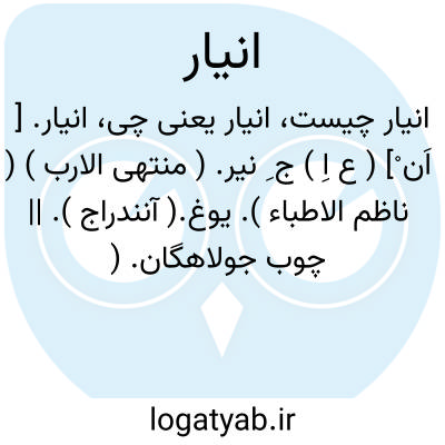 انیار. [ اَن ْ] ( ع اِ ) ج ِ نیر. ( منتهی الارب ) ( ناظم الاطباء ). یوغ.( آنندراج ). || چوب جولاهگان. ( آنندراج ).