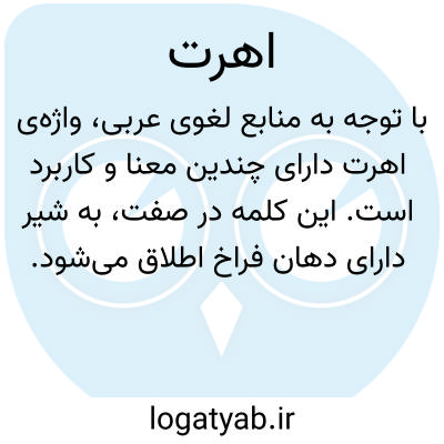با توجه به منابع لغوی عربی، واژهی اَهْرَت [اَ رَ] دارای چندین معنا و کاربرد است. این کلمه در صفت، به شیرِ دارای دهان فراخ اطلاق میشود. همچنین برای توصیف ظرفی با گوشهای گشاد و فراخ نیز به کار رفته است. در وجه اسمی نیز، این واژه بهصورت مفرد، به معنای شیر به کار میرود. در شکل مونث، اَهْرَة [اَ رَ] به عنوان یک اسم عربی، بر حالت نیکو و هیئت و شکلِ خوب دلالت دارد. علاوه بر این، این واژه برای اشاره به متاع و اسباب خانه نیز استفاده میشود. جمع این کلمه در قالبهای اُهُر و اَهْرَات ذکر شده است. برای مطالعهی بیشتر و دقیقتر در مورد این واژه و مشتقات آن، میتوان به منابع معتبری همچون آنندراج، منتهی الارب، ناظمالاطبا، المصادر زوزنی، تاجالمصادر بیهقی و مهذبالاسماء مراجعه نمود.