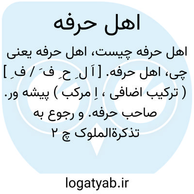 اهل حرفه. [ اَ ل ِ ح ِ ف َ / ف ِ ] ( ترکیب اضافی، اِ مرکب ) پیشه ور. صاحب حرفه. و رجوع به تذکرةالملوک چ 2 ص 49 شود.