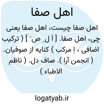 اهل صفا. [ اَ ل ِ ص َ ] ( ترکیب اضافی، اِ مرکب ) کنایه از صوفیان. ( انجمن آرا ). صاف دل. ( ناظم الاطباء ): مودت اهل صفا چه در روی و چه در قفا. ( گلستان ). || عیاش. ( ناظم الاطباء ).