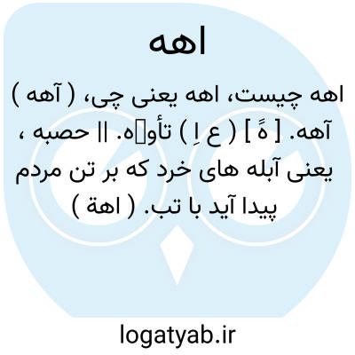 ( آهه ) آهه. [ هََ ] ( ع اِ ) تأوﱡه. || حصبه، یعنی آبله های خرد که بر تن مردم پیدا آید با تب.