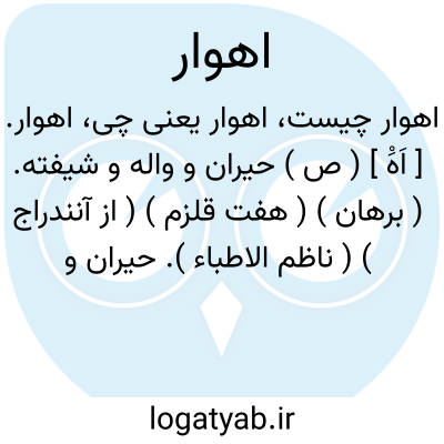 اهوار. [ اَهَْ ] ( ص ) حیران و واله و شیفته. ( برهان ) ( هفت قلزم ) ( از آنندراج ) ( ناظم الاطباء ). حیران و شیفته. ( انجمن آرا ). واله و حیران. ( شعوری ):