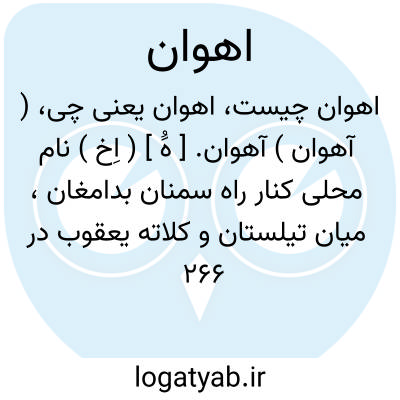 ( آهوان ) آهوان. [ هَُ ] ( اِخ ) نام محلی کنار راه سمنان بدامغان، میان تیلستان و کلاته یعقوب در 266 هزارگزی طهران.