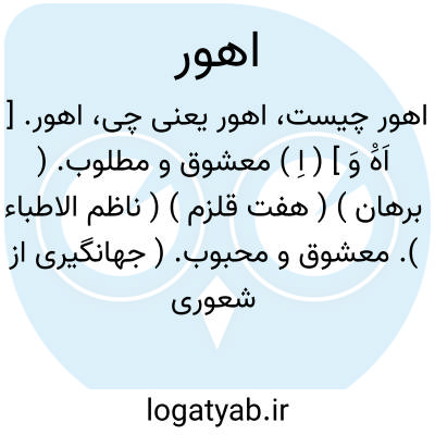 اهور. [ اَهَْ وَ ] ( اِ ) معشوق و مطلوب. ( برهان ) ( هفت قلزم ) ( ناظم الاطباء ). معشوق و محبوب. ( جهانگیری از شعوری ):