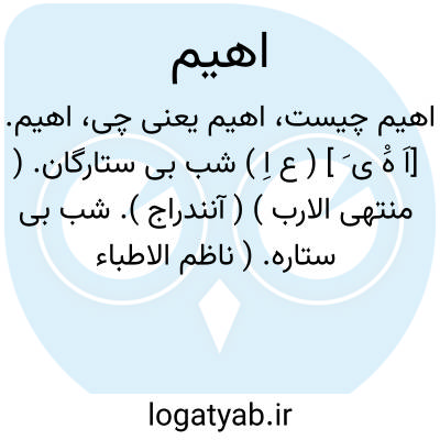 اهیم. [اَ هَْ ی َ ] ( ع اِ ) شب بی ستارگان. ( منتهی الارب ) ( آنندراج ). شب بی ستاره. ( ناظم الاطباء ). || هوشاز زده. ( خلاصه، از یادداشت به خط مرحوم دهخدا ).