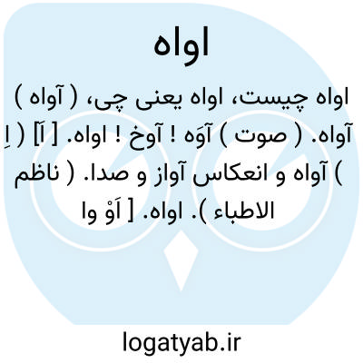 اواه. [ اَ] ( اِ ) آواه و انعکاس آواز و صدا. ( ناظم الاطباء ).