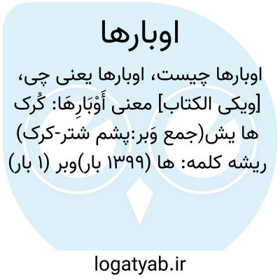 (بروزن فرس) پشم شتر (کرک) جمع آن اَوْبار است و یکبار در کلام الله بکار رفته است. از پشمهای چهار پایان و از کرکها و موهای آنان اثاث منزل و مال بدست می‏آورید تا مدتی. پشم از گوسفند، وبر از شتر، موی از بز است.