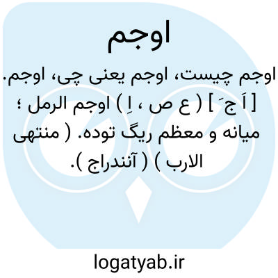 اوجم. [ اَ ج َ ] ( ع ص، اِ ) اوجم الرمل؛ میانه و معظم ریگ توده. ( منتهی الارب ) ( آنندراج ).