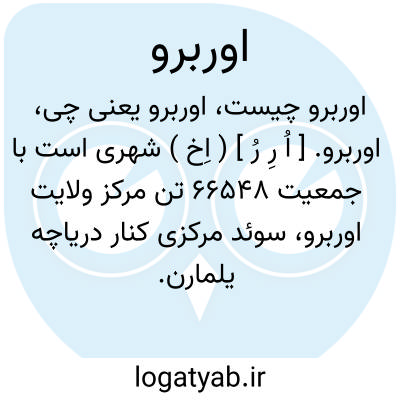 اوربرو. [ اُ رِ رُ ] ( اِخ ) شهری است با جمعیت 66548 تن مرکز ولایت اوربرو، سوئد مرکزی کنار دریاچه یلمارن. کارخانه های کفش سازی و کلیسا وقلعه ای از قرن 13 م. دارد. ( دایرةالمعارف فارسی ).