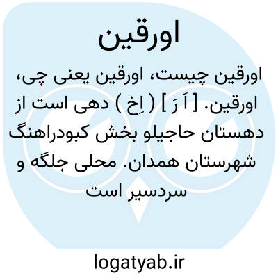 اورقین. [ اَ رَ ] ( اِخ ) دهی است از دهستان حاجیلو بخش کبودراهنگ شهرستان همدان. محلی جلگه و سردسیر است با 510 تن سکنه. آب آن از قنات و محصول آنجا غلات، انگور، حبوبات، لبنیات، صیفی و شغل اهالی زراعت، گله داری و صنایع دستی زنان قالی بافی است. راه اتومبیل رو دارد. ( از فرهنگ جغرافیائی ایران ج 5 ).