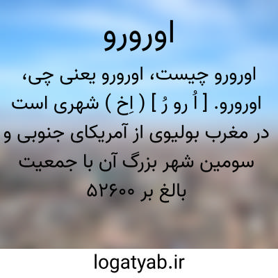 اورورو. [ اُ رو رُ ] ( اِخ ) شهری است در مغرب بولیوی از آمریکای جنوبی و سومین شهر بزرگ آن با جمعیت بالغ بر 52600 تن. بنای استخراج منابع معدنی ( 1595م. )باعث رونق آن بوده است. ( از دایرةالمعارف فارسی ).
