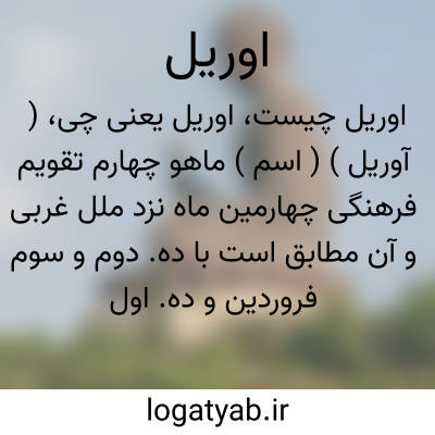 ( آوریل ) ( اسم ) ماهو چهارم تقویم فرهنگی چهارمین ماه نزد ملل غربی و آن مطابق است با ده. دوم و سوم فروردین و ده. اول اردیبهشت.
