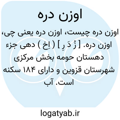 اوزن دره. [ زُ دَ رِ ] ( اِخ ) دهی جزء دهستان حومه بخش مرکزی شهرستان قزوین و دارای 184 سکنه است. آب آن از قنات و محصول آنجا غلات دیمی و شغل اهالی زراعت، گلیم و جاجیم بافی است. ساکنین از طایفه چکینی هستند و تغییر مکان نمیکنند. ( از فرهنگ جغرافیایی ایران ج 1 ).
