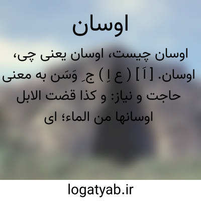 اوسان. [ اَ ] ( ع اِ ) ج ِ وَسَن به معنی حاجت و نیاز: و کذا قضت الابل اوسانها من الماء؛ ای اوطارها. ( منتهی الارب ) ( ناظم الاطباء ). رجوع به وسن شود.