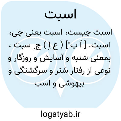 اسبت. [ اَ ب ُ] ( ع اِ ) ج ِ سبت، بمعنی شنبه و آسایش و روزگار و نوعی از رفتار شتر و سرگشتگی و بیهوشی و اسب نیکورو.