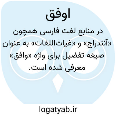 در منابع لغت فارسی همچون «آنندراج» و «غیاث‌اللغات» به عنوان صیغۀ تفضیل برای واژۀ «وافق» معرفی شده است. این بدان معناست که «اُفْقَ» مفهوم «وافق‌تر» را در بر می‌گیرد. در ادبیات و متون کلاسیک، «وافق» به معنای موافق، مطابق، شایسته و مناسب به کار می‌رفته است؛ لذا «اُفْقَ» به صورت دقیق‌تر، دلالت بر درجه‌ای اعلا از تناسب و انطباق دارد. این مفهوم، بیانگر برتری یک چیز بر چیز دیگر از منظر همسویی و سازگاری ذاتی است.