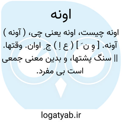 ( آونه ) آونه. [ وِ ن َ ] ( ع اِ ) ج ِ اوان. وقتها. || سنگ پشتها، و بدین معنی جمعی است بی مفرد.