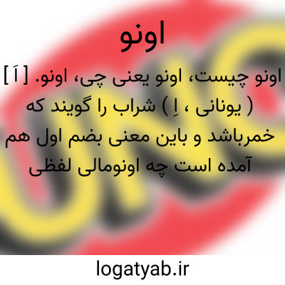 اونو. [ اَ ] ( یونانی، اِ ) شراب را گویند که خمرباشد و باین معنی بضم اول هم آمده است چه اونومالی لفظی است یونانی مرکب از شراب و عسل و مالی عسل را گویند. ( برهان ) ( آنندراج ). می و خمر. ( ناظم الاطباء ).
