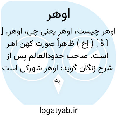 اوهر. [ اَ هََ ] ( اِخ ) ظاهراً صورت کهن اهر است. صاحب حدودالعالم پس از شرح زنگان گوید: اوهر شهرکی است به بر کوه نهاده و با آبهای بسیار جایی بسیارکشت. ( حدود العالم ).