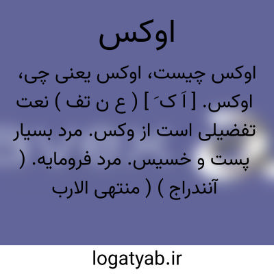 اوکس. [ اَ ک َ ] ( ع ن تف ) نعت تفضیلی است از وکس. مرد بسیار پست و خسیس. مرد فرومایه. ( آنندراج ) ( منتهی الارب ). رجوع به وکس شود.