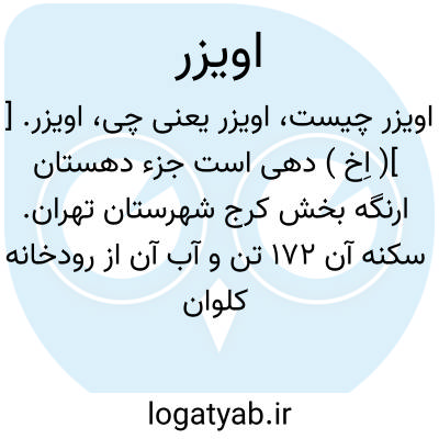 اویزر. [ ]( اِخ ) دهی است جزء دهستان ارنگه بخش کرج شهرستان تهران. سکنه آن 172 تن و آب آن از رودخانه کلوان و کلها و محصول آن غلات، ارزن، گردو، لبنیات و عسل است ومعدن زغال سنگ دارد که استخراج میشود. شغل اهالی زراعت و گله داری است. عده ای در معدن زغال سنگ کارگرند.راه مالرو دارد. ( از فرهنگ جغرافیایی ایران ج 1 ).