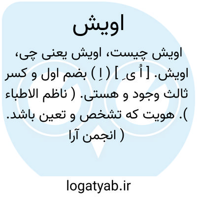 اویش. [ اُ ی ِ ] ( اِ ) بضم اول و کسر ثالث وجود و هستی. ( ناظم الاطباء ). هویت که تشخص و تعین باشد. ( انجمن آرا ) ( آنندراج ). بمعنی هویت از مجعولات دساتیر است. ( یادداشت مرحوم دهخدا ).
