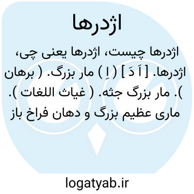 ( اسم ) مار بزرگ ماری عظیم با دهان فراخ که در عربی ثعبان گویند اژدها توضیح این کلمه مفرد است و جمع اژدر نیست.