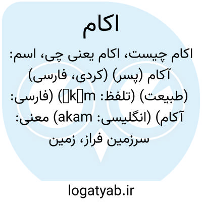 اسم: آکام (پسر) (کردی، فارسی) (طبیعت) (تلفظ: ākām) (فارسی: آکام) (انگلیسی: akam)