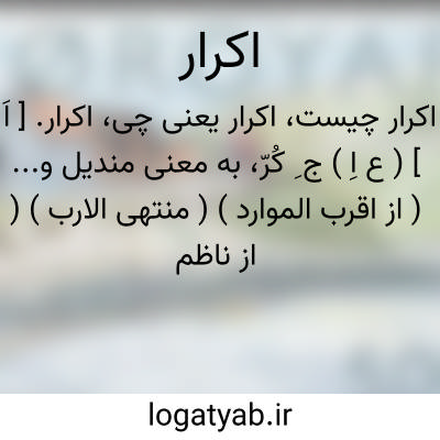 اکرار. [ اَ ] ( ع اِ ) ج ِ کُرّ، به معنی مندیل و... ( از اقرب الموارد ) ( منتهی الارب ) ( از ناظم الاطباء ). و رجوع به کر شود. || ج ِ کَرّ، به معنی رسن پالان و... ( از اقرب الموارد ) ( از منتهی الارب ) ( از آنندراج ). رجوع به کر شود. اکرار. [ اِ ] ( اِ ) نوع کبیر صامریوما است. ( تحفه حکیم مؤمن ). صامریوما. آفتاب گردان. طورنة شوالی. ( یادداشت مؤلف ). صامریوما. ( تذکره داود ضریر انطاکی ص 57 ). و رجوع به صامریوما شود.