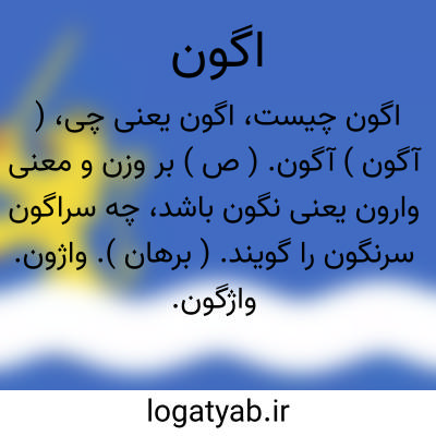 ( آگون ) آگون. ( ص ) بر وزن و معنی وارون یعنی نگون باشد، چه سراگون سرنگون را گویند. ( برهان ). واژون. واژگون. سرنگون. معلق. || سراشیب. و ظاهراً این کلمه جز در حال ترکیب مستعمل نیست.
