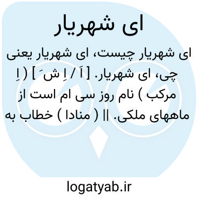 ای شهریار. [ اَ / اِ ش َ ] ( اِ مرکب ) نام روز سی ام است از ماههای ملکی. || ( منادا ) خطاب به کلانتر و شهریار. ( برهان ) ( آنندراج ) ( انجمن آرا ) ( هفت قلزم ).