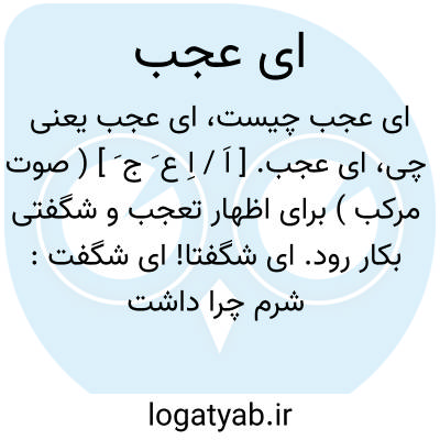 ای عجب. [ اَ / اِ ع َ ج َ ] ( صوت مرکب ) برای اظهار تعجب و شگفتی بکار رود. ای شگفتا! ای شگفت: