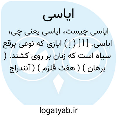 ایاسی. [ اَ ] ( اِ ) ایازی که نوعی برقع سیاه است که زنان بر روی کشند. ( برهان ) ( هفت قلزم ) ( آنندراج ) ( جهانگیری ). رجوع به ایازی شود.
