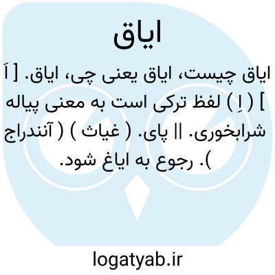 ایاق. [ اَ ] ( اِ ) لفظ ترکی است به معنی پیاله شرابخوری. || پای. ( غیاث ) ( آنندراج ). رجوع به ایاغ شود.